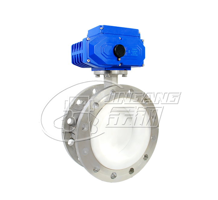 產品名(míng)稱:電(diàn)動法蘭不鏽(xiù)鋼(gāng)襯氟蝶閥