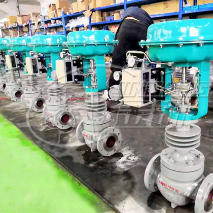 溫控(kòng)型(xíng)調節閥(fá)的(de)結構與原理,工(gōng)作前主閥(fá)芯處於半開位置(zhì),傳感器處於(yú)自然(rán)狀(zhuàng)態。接上電源,主閥芯全開(kāi)。介質(zhì)由箭頭方向流(liú)入(rù)主閥體經閥芯對儲(chǔ)熱箱進行加熱。當溫度升到相(xiàng)應設定值時,傳感器即產生相應線性信(xìn)號輸入至溫控調節儀,溫控調節儀通過比較傳感器溫度信號及用戶設定(dìng)溫度比較,進行PID運算,輸出4~20mA電信號至電-氣定位器,定位器調節信號驅動氣動執行器,驅動閥杆、閿芯產生位移,關閉主閥芯。通過閉環控製,進(jìn)行(háng)連續調節來控製閥(fá)後(hòu)溫度至設定值,冷卻型(xíng)反之(zhī),並可根據使用現場係統設(shè)備的不同靈活調整(zhěng)比例帶,積分時間等參數,使之與係統達(dá)到zui佳匹配,溫差比例小,反(fǎn)應靈敏,使用壽命高。![]()